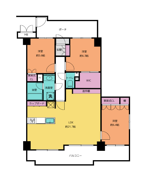 3LDK(洋6.4・6.3・5.6 LDK21.7)